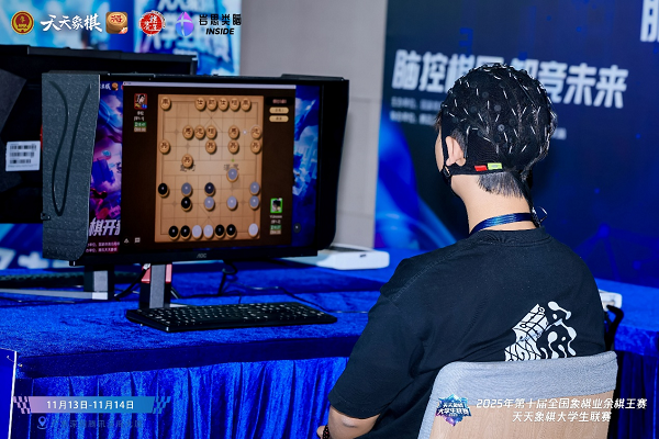 在近期的一场演示中,选手佩戴岩思类脑非侵入式脑电帽,通过意念实现了“脑控中国象棋”竞技,全程保持稳定应用,并在全球范围内首次实现实时直播。