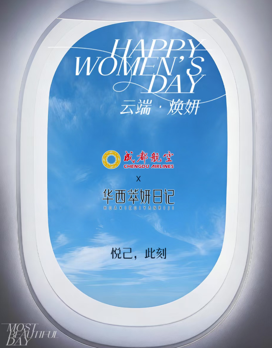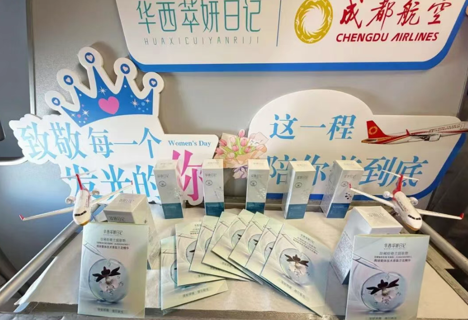 此次主题航班是成都航空与华西萃妍日记的首次跨界联动。作为植根成都的本土航司,成都航空致力于打造人文航空服务;而华西萃妍日记作为华西专利转化成果,专注植萃功效护肤与抗衰服务。双方基于共同的地域基因与品质追求,在三八妇女节这一节点,将客舱转化为融科普、体验与情感连接的生活场景。