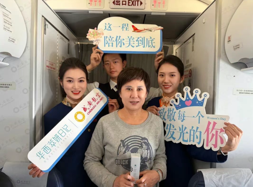 该航班平稳降落成都双流国际机场。这场云端邂逅虽已落幕,华西萃妍日记相关负责人表示,未来将继续探索场景化的沟通方式,传递“关注自我、呵护肌肤”的健康理念,让更多女性在日常的呵护中遇见更从容、更自信的自己。