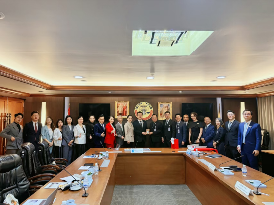 12月2日下午,考察团走进泰国华人青年商会,与会长李嘉淳及商会会员共话中泰经贸新机遇。泰国华人青年商会作为泰国首个青年华人组织,拥有 200 余位常执委及近千名会员,会员覆盖制造、科技、金融等领域,致力于推动泰中青年企业家交流。正如李嘉淳会长所言:“中泰合作正从‘政策互通’迈向‘民心相通’,青年一代将成为最活跃的桥梁。”未来,两地协会将持续推动法律与商贸协同,为“中泰一家亲”注入新活力。