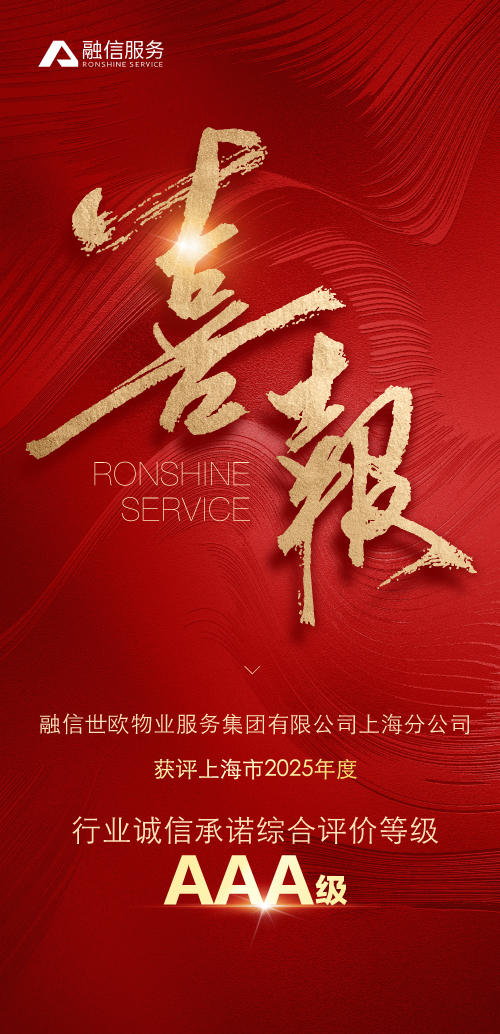 2025年,融信世欧物业服务集团有限公司上海分公司聚焦“信用+物业”重点领域,将信用体系建设作为推动企业综合实力提升的主要手段,坚持“诚信立企”的经营理念,本着以诚取信、以信立誉原则,通过管理体系建设、合规经营、安全生产、合同履约等诚信实践,获得企业AAA级资信认证。
