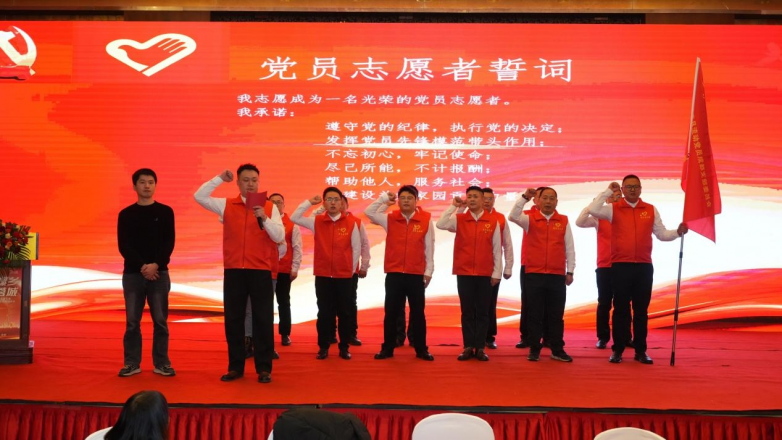 离乡不离党,初心永不忘。年会现场,一个庄严的授旗仪式格外引人注目。绵阳市盐亭县委党建办副主任李俊宏向中共盐亭县流动党员成都支部委员会委员、志愿服务队队长潘治圳及志愿者代表授予了“盐亭流动党员志愿服务队”队旗。